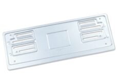 Porta targa anteriore in Polipropilene, completo di fori e spazio serigrafabile. Qui fotografata nella versione grigia.